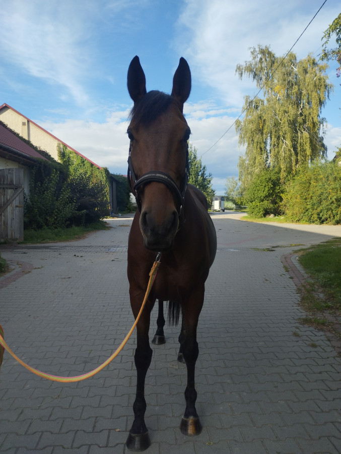 Monte to 6-letnia klacz, około 162 wzrostu. Bardzo spokojna, grzeczna w obyciu, praktycznie nic nie robi na niej wrażenia, nie patrzy na otoczenie. Chodzi w teren, na lonży, skacze małe parkury- pojedyncze większe przeszkody, pracuje na drągach. Bardzo równo galopuje. Posiadam tuv z końca czerwca do wglądu. Regularnie werkowana i szczepiona. Proszę o kontakt osoby poważnie zainteresowane. Tel. 519767444
