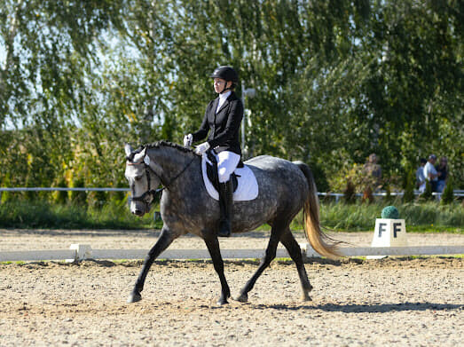 Bardzo bezpieczna pod siodłem, chodzi na kontakcie, robi ustępowania, lubi skakać, samotne wyjazdy w teren nie wzbudzają w niej negatywnych emocji. Idealna dla osoby lubiącej prace z ziemi, która chce mieć spokojnego konia pod siodłem.