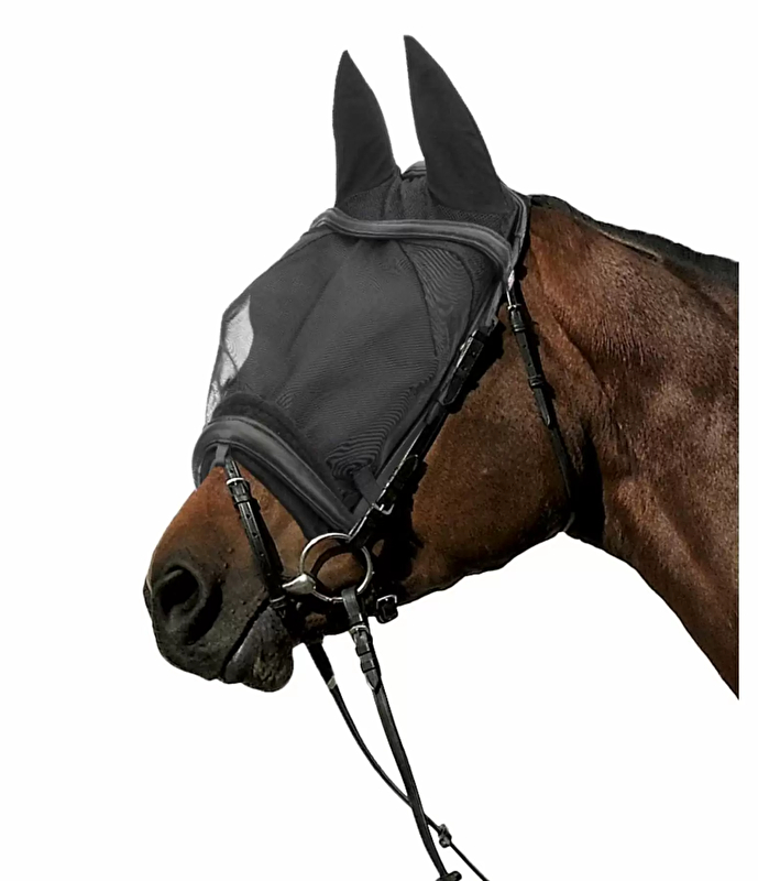 górna część wokół uszu wykonana jest z wyjątkowo lekkiego i oddychającego materiału siateczkowego, uszy są elastyczne. Czarna siatka o gęstych oczkach chroni okolice oczu konia przed irytującymi muchami. Można go zamocować na górze paska na szyję i z boku nachrapnika za pomocą elastycznych uchwytów KV. Końcówka nachrapnika pozostaje ruchoma, a dzięki elastycznej wkładce zamyka się miękko i bezpiecznie.