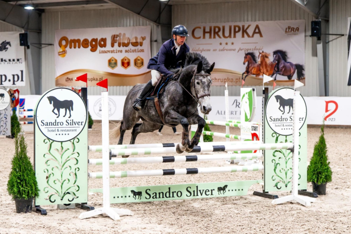Koń po pierwszych startach w zawodach skokowych w klasie L.