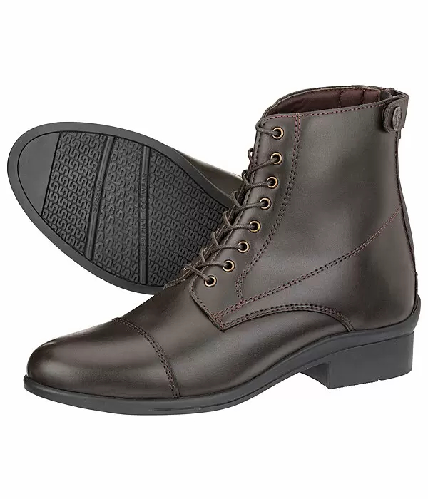 Botki sznurowane, wykonane z miękkiej cholewki z zamkiem z tyłu umożliwiającym szybkie zakładanie i zdejmowanie. Teraz ze sportową podeszwą zewnętrzną i ulepszonym dopasowaniem. Wewnętrzna wyściółka z tkaniny tekstylnej, podeszwa zewnętrzna z gumy z piętą jeździecką.