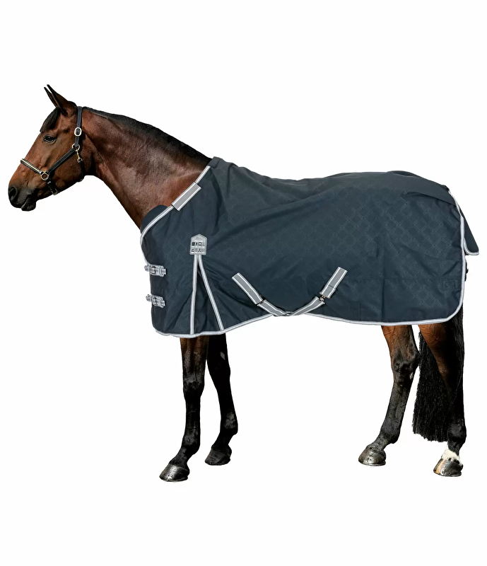 Wielofunkcyjna derka outdoorowa z praktycznym systemem łączenia wkładów, wykonany ze sprawdzonego, oddychającego i wodoodpornego materiału ripstop o grubości 600 denierów (słup wody 3000 mm) z subtelnym wytłoczeniem w kratkę. Dzięki oczkom mocującym derkę można połączyć z derką wewnętrzną z polaru w systemie kombinowanym. W zależności od temperatury zewnętrznej stopień ocieplenia sufitu można błyskawicznie regulować indywidualnie. Miękkie, boczne naramienniki (w środku polar) umożliwiają optymalne rozłożenie nacisku podczas opuszczania głowy. Gładka, przyjazna dla futra podszewka. Obszerny klin zapewniający optymalną swobodę ruchów. Podwójne, regulowane na szerokość przednie zapięcie z D-ringami i karabińczykami oraz dodatkowymi paskami KV i regulowanymi paskami poprzecznymi. Urządzenie do mocowania pasów udowych, pasów ogonowych o regulowanej długości i klapy ogonowej.