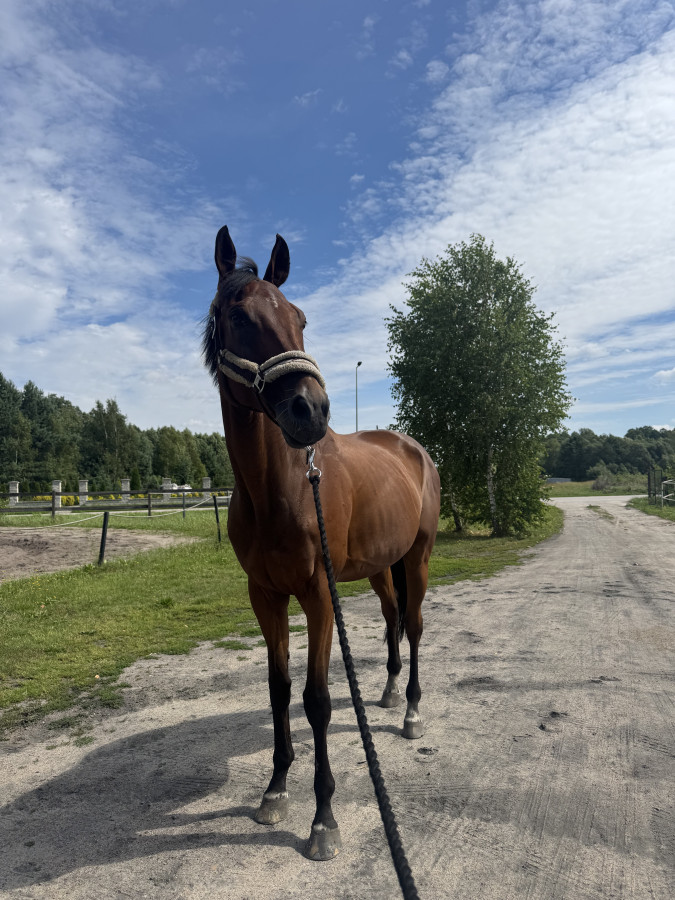 90cm. w treningu do L klasy Pracuje chętnie, z sercem do skoków. Chodzi 4 razy w tygodniu pod siodłem, regularnie pracuje zarówno na placu, jak i w terenie.