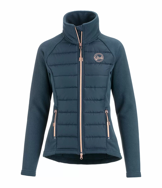 Ładne połączenie miękkiego polaru i wysokiej jakości, lekko wyściełanego materiału z mikrofibry. Rękawy, tył i boczne wstawki wykonane z polaru sprawiają, że kurtka jest przytulna i miękka. Wysoki, miękki polarowy kołnierz, podszyty dwukierunkowy zamek błyskawiczny z ochroną podbródka, 2 przednie kieszenie zapinane na zamek i haft STEEDS na piersi.