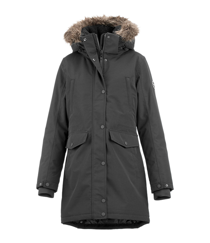 Niezwykle ciepła i długa zimowa parka jeździecka z wysokim, regulowanym kapturem, który można odpiąć na zamek błyskawiczny, oraz kołnierzem ze sztucznego futra, który można odpiąć za pomocą zamka błyskawicznego. Wodoodporna i wiatroszczelna. Ciepłe, pikowane wypełnienie z miękkiej imitacji puchu. Regulowane mankiety z elastyczną osłoną przeciwwiatrową, 2 kieszenie z klapką, w tym kieszenie wpuszczane z przodu, 2 kieszenie na piersi zapinane na zamek, kryty dwukierunkowy zamek błyskawiczny z przodu, 2 rozcięcia jeździeckie zapinane na zatrzaski z tyłu. Dzięki podszewce z pluszowego futra i puszystemu polarowi w kapturze i wewnątrz kołnierza ten płaszcz jest szczególnie przytulny i miękki. Regulowana szerokość w pasie, naszywka Felix Bühler na rękawie.