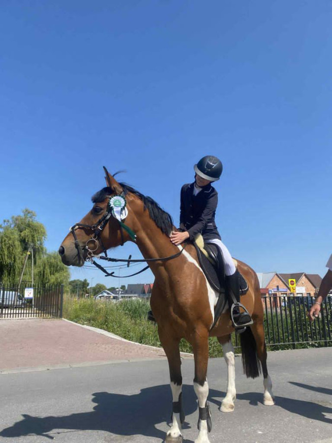 Użytkowana w rekreacji i sporcie, zna elementy ujeżdżenia, przygotowywana pod odznaki jeździeckie. Ma za sobą debiut na zawodach skokowych 70 cm (czerwiec 2025 r.) W domu skacze parkury 80 cm, pojedyncze przeszkody 100 cm. Nie była jeżdżona w terenie podczas pobytu u nas. Czasem bryka dlatego wymaga jednego pewnego jeźdźca, który zapewni jej konsekwencję i odpowiednie prowadzenie.