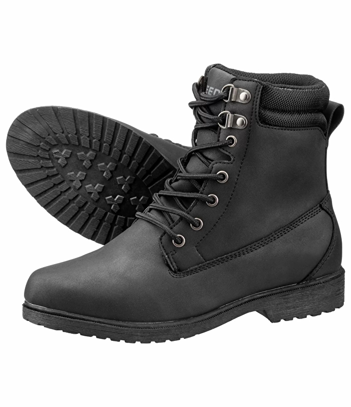 Stabilne i jeździeckie buty wykonane z wytrzymałego materiału wierzchniego. Wewnętrzna wyściółka wykonana z oddychającej tkaniny siateczkowej. Podeszwa gumowa. Pozostałe szczegóły: szybkie sznurowanie, wyściółka w kostce, boczny język, który zapobiega wnikaniu wody.
