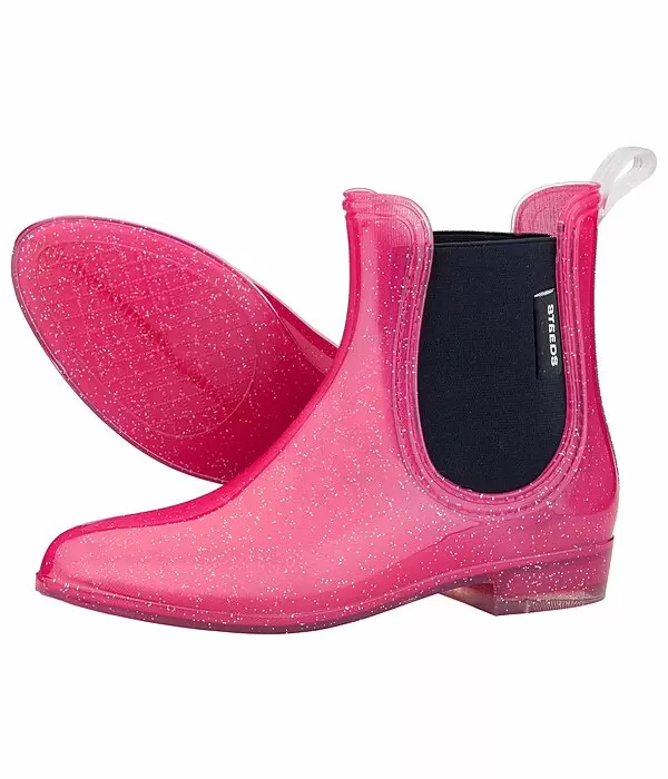 Piękne, błyszczące sztyblety ze zwężaną nogą. Z antypoślizgową podeszwą i elastycznymi wstawkami po bokach, które ułatwiają zakładanie. Materiał wierzchni: PCV.