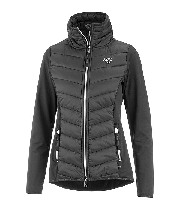 Wygodna kurtka jeździecka wykonana z elastycznego, funkcjonalnego materiału z przodem i kołnierzem wykonanym z wysokiej jakości pikowanego i wyściełanego nylonu. 2 przednie kieszenie zapinane na zamek, dwukierunkowy zamek błyskawiczny z osłoną podbródka i haft Felixa Bühlera na piersi. Elastyczne mankiety, pas i kołnierz z napisem Felix Bühler.