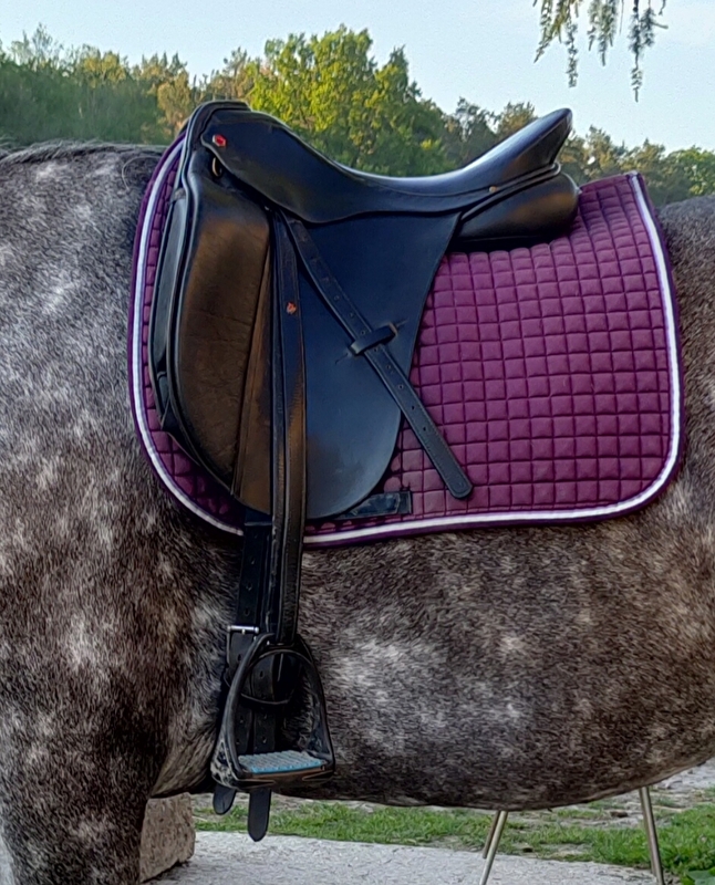 Siodło ujeżdżeniowe Albion Style, siedzisko 17.5 cala. Użytkowane 2 lata. Stan bardzo dobry. Rozstaw łęku NM (narrow medium) wg angielskiej rozmiarówki / 29cm wg DawMaga (M) / 32cm wg Prestige. Szersza terlica, kształt U, dużo miejsca na łopatkę. Dobrze leży na płaskich plecach i na koniach wykłębionych. Szeroki tunel na 4 palce. Przystuły wychodzące ze środka terlicy. Szlufka dająca możliwość modyfikacji zapięcia popręgu. Rozważę zamianę na siodło wszechstronne/skokowe podobnej jakości w większym rozmiarze (L) na terenie województwa lubelskiego.