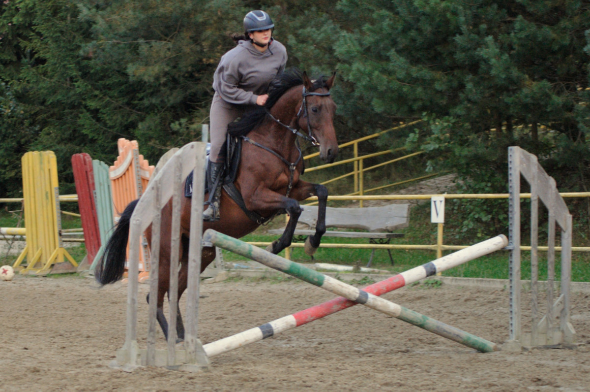 Sprzedam klacz pełnej krwi angielskiej (Ecosse/Kaniska). Kacossa jest ambitną klaczą z potencjałem do wkkw lub skoków. Jest koniem do przodu reagujacą na półparade. Koń jednego jeźdźca, potrzebuje trochę czasu, aby w pełni zaufać człowiekowi. Z obejścia typ miśka. Nie kopie, nie gryzie. Doskonale pracuje z ziemi. Aktualnie pracuje głównie z ziemi, chodzi na płasko , pokonuje parkury do 80 pod 16-latką. Koń nie nadaje dla dzieci, przez dość elektryczny charakter . Najlepiej dla osoby na poziomie soj. Kiedyś w treningu skokowym, brała udział dwukrotnie w wyścigach 3-latków - raz była pierwsza. Klacz padokowana w dużych stadach oraz łąkach . Jest dość wysoko w stadzie.