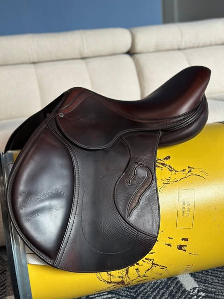 Wykonanie: ręcznie szyte we Francji Siodło bardzo wygodne i dobrze wyważone, zapewnia stabilną pozycję w skoku. Skóra miękka, elastyczna i dobrze utrzymana. Regularnie konserwowane, nie wymaga żadnych napraw — gotowe do jazdy. Idealne dla osób szukających jakościowego, dopasowanego siodła skokowego