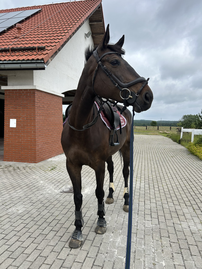 Nowego domu szuka klacz skokowa z bardzo dobrym pochodzeniem. Klacz spokojna przy wszystkich zabiegach pielęgnacyjnych. Obyta z zawodami regionalnymi. Klacz duża ramowa 170cm dobrze zbudowaną. Chętna do pracy. Łatwa w jeździe lecz dla kogoś na poziomie SOJ NIE DLA AMATORA osoby początkującej.