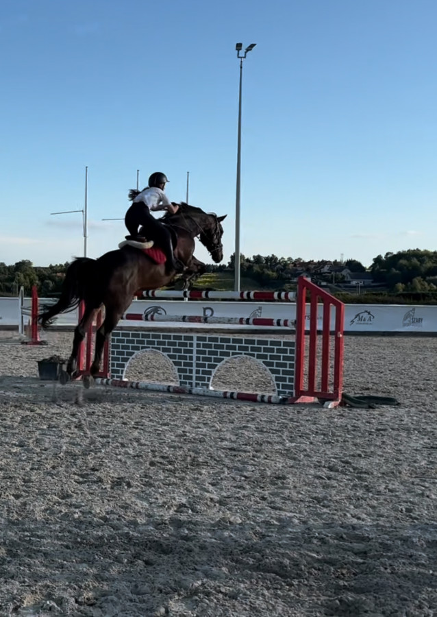 Koń aktualnie na poziomie C klasy. Umiejętności na więcej, jechał raz CC klasę.