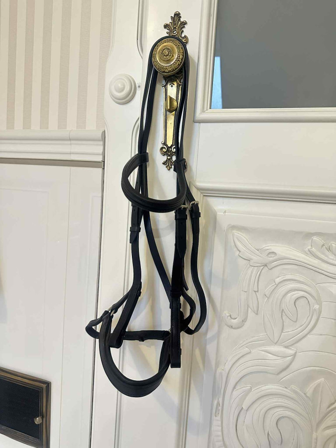 Sprzedam, bardzo porządne ogłowie, z dobrej jakości skóry i szerokimi paskami marki KN (niemieckie). Kolor czarny, rozmiar to duży full lub x-full. Nachrapnik hanowerski, podszyty miękką skórą, paski policzkowe na kołki. Prawdziwa miękka skóra, nie mielonka najtańszego gatunku. Cena 240 zł.