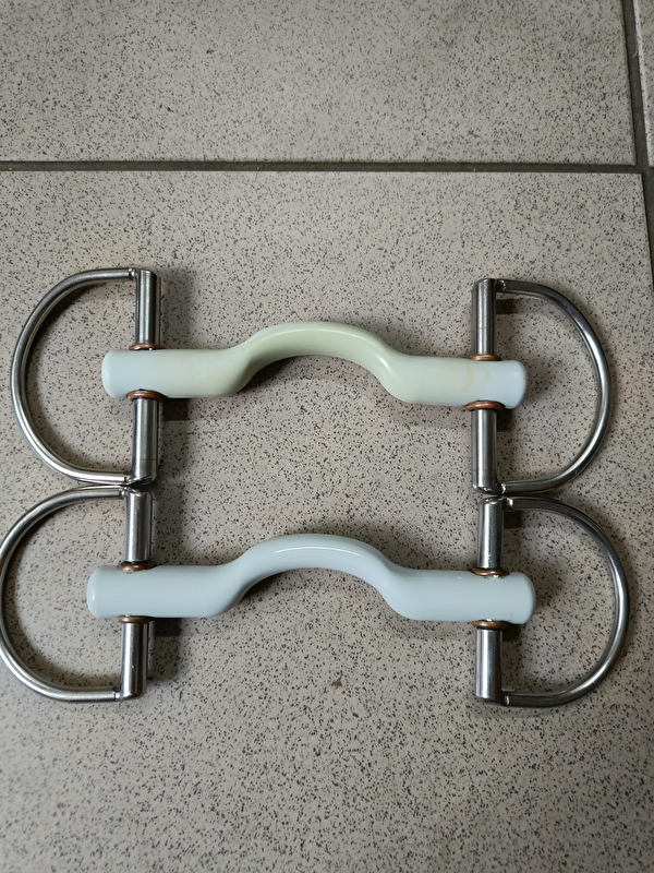 Obydwa wędzidła są w rozmiarze 13 cm i są miękkie. Różnią się wysokością ringów. Na ściegierzach nie ma rys. Jedynie to jedno jest lekko odbarwione. Cena za to odbarwione -299, za to drugie 349. Dopóki ogłoszenie jest widoczne to jest aktualne.