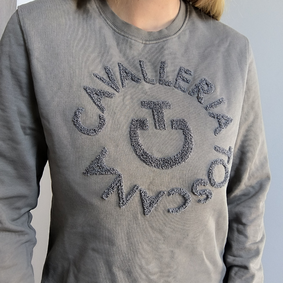Bluza jezdziecka cavalleria toscana. Szaro beżowe tony. Z logo 3 D futerkowym. Stylowe. Idelana na tylko do stajni ale rowniez na codzien. Bez podszycia. Nie ma kieszeni. Jej zaletą jest wygoda lekkość. Idelane dla osób które cenią sobie komfort i luz. Stan bardzo dobry do przeprania. Rozm M szerokość 50 cm x2 dl całkowita od ramienia 60-65 cm Dl rękawa 64 cm