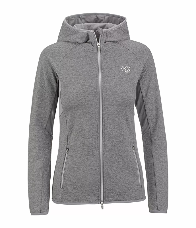 Miękka, elastyczna kurtka z kapturem i wstawkami z siateczki pod pachami i w kapturze. Oddychająca i szybkoschnąca. Chropowata strona wewnętrzna, 2 przednie kieszenie zapinane na suwak, dwukierunkowy zamek błyskawiczny z przodu z osłoną podbródka, dyskretny haft Felix Bühler na piersi i elastyczne mankiety na kapturze, u dołu i na końcach rękawów. 92% poliestru 8% elastanu.