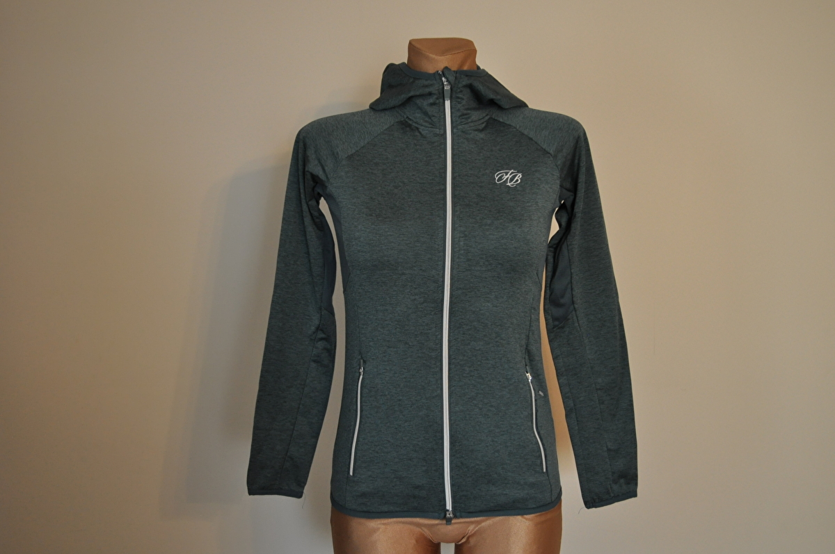 Miękka, elastyczna bluza z kapturem i wstawkami z siateczki pod pachami i w kapturze. Oddychająca i szybkoschnąca. Chropowata strona wewnętrzna, 2 przednie kieszenie zapinane na suwak, dwukierunkowy zamek błyskawiczny z przodu z osłoną podbródka, dyskretny haft Felix Bühler na piersi i elastyczne mankiety na kapturze, u dołu i na końcach rękawów. 92% poliestru 8% elastanu.