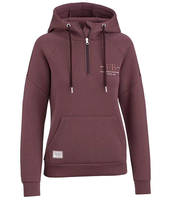 Sportowa bluza z kapturem z regulowanym, wysoko zapinanym zamkiem błyskawicznym, wykonana z elastycznego materiału. Kontrastowe taśmy na rękawach i nadruk z haftem na piersi. Przednia kieszeń typu kangur oraz elastyczne mankiety i dół.
