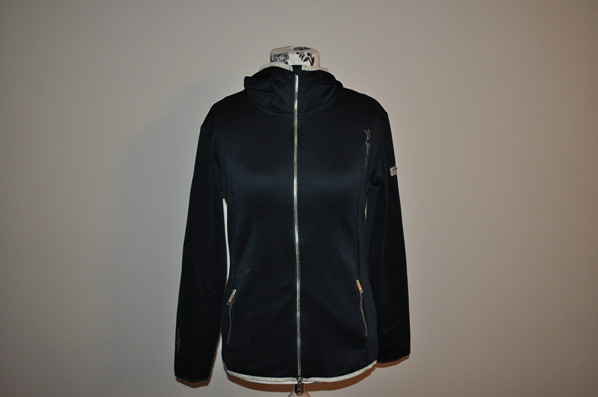 Lekka, oddychająca, szybkoschnąca i bardzo elastyczna kurtka ze stretchem z ładnymi detalami. Dół, mankiety i kaptur obszyte błyszczącą gumką. Podszyty dwukierunkowy zamek z przodu i 2 przednie kieszenie na zamek. Na piersi dyskretny nadruk Felixa Bühlera. Materiał: 83% poliester, 12% wiskoza, 5% elastan.