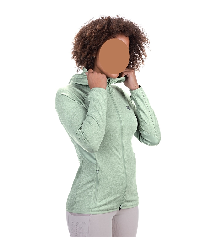 Miękka, elastyczna bluza z kapturem w melanżowym stylu z oddychającymi wstawkami z siateczki pod pachami i miękkim wnętrzem. Podszyty dwukierunkowy zamek błyskawiczny z przodu z osłoną podbródka, 2 przednie kieszenie na suwak, elastyczne wykończenia rękawów, kaptura i dołu bluzy. Oddychająca i szybkoschnąca. Materiał: 94% poliester, 6% elastan.