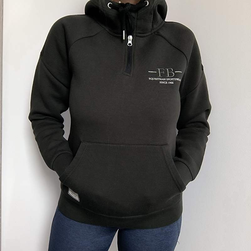 Bluza jezdziecka Felix Bühler. Cudowny przez wielu poszukiwany kolor- ciemnozielony butelkowa zieleń. Bardzo ładnie się prezentuje. Materiał Ala piankowy. Kangurek. Duży kaptur z rozpięciem. Bluza komfortowa przyjemna. Bez podszycia. Stan bardzo dobry lekkie ślady użytkowania.