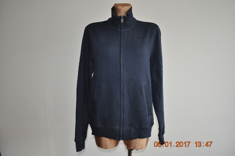 Sprzedam nową, z metkami, męską bluzę firmy HV Polo. Granatowa (kolor navy), bez kaptura, bawełniana, pikowana, zapinana na zamek. Posiada dwie kieszenie. Logo z przodu i z tyłu wyszyte nicią w kolorze bluzy.