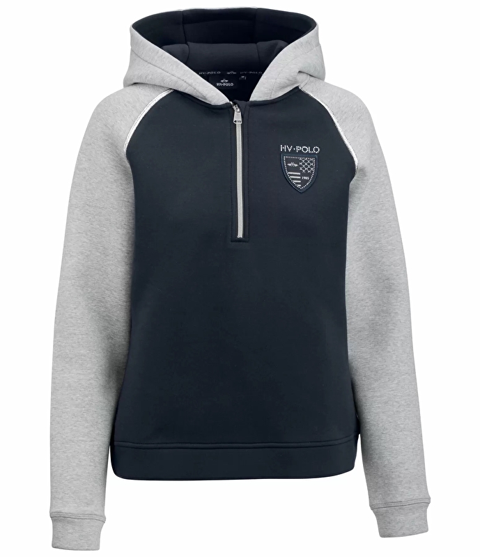 Sportowa bluza z kapturem w 2-kolorowym stylu, wykonana z wiatroszczelnej mieszanki bawełny. Aplikacja z kryształkami HV POLO, naszywka HV POLO na piersi.