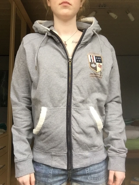 Sprzedam bluzę w bardzo dobrym stanie firmy Kingsland. Unisex, rozmiar XS ( z metki ). Szara, zapinana na zamek obszyty czarną lamówką z przodu. Dwie kieszenie przednie obszyte białym futerkiem, podobnie jak kaptur. Ciemne łokcie. Polecam !
