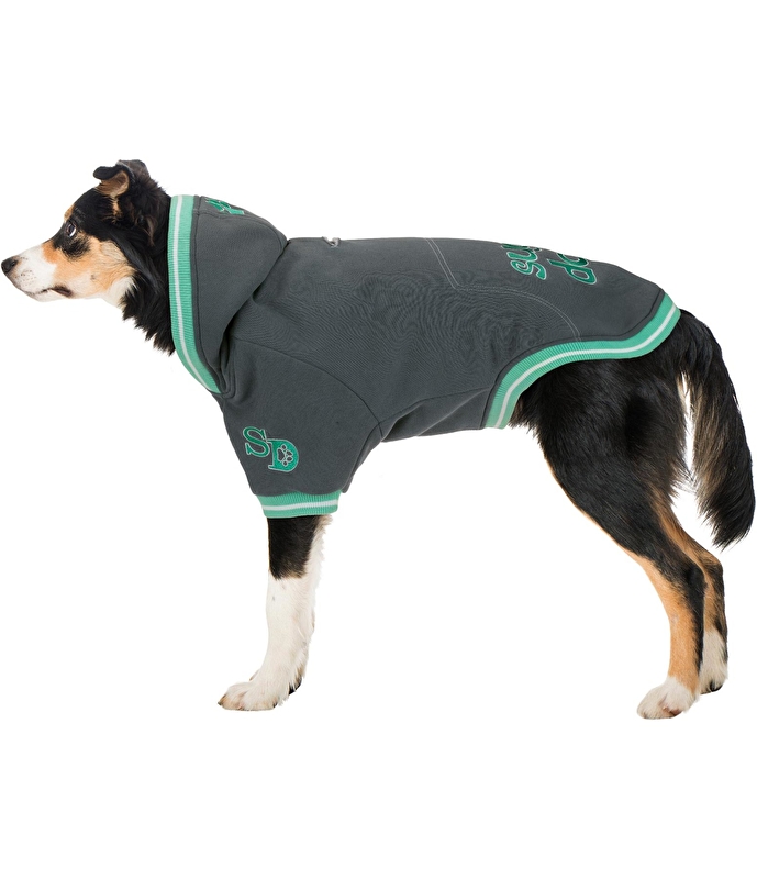 Urocza kurtka dla psa z przytulną, ciepłą podszewką z pluszowego polaru i sportowymi detalami, które przypominają prawdziwą bluzę z kapturem. Kaptur można przymocować za pomocą przycisku i nie przeszkadza psu w ruchu. Słodki dzianinowy mankiet i duże wyhaftowane logo z tyłu dopełniają sportowy wygląd. Aby zamknąć za pomocą KV na brzuchu Wewnątrz z małą pętlą do zawieszania, która ułatwia przechowywanie, gdy nie jest używana. Materiał wierzchni 60% bawełna, 40% poliester, wewnątrz 100% poliester.