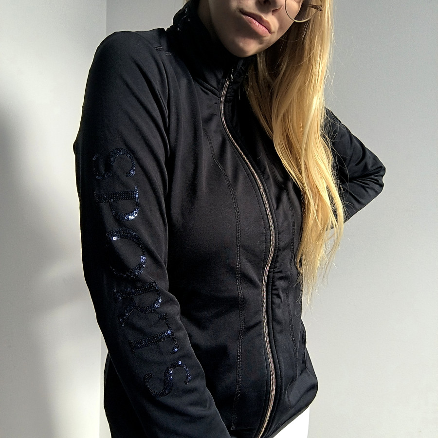 Bluza jezdziecka Schockemohle. Granatowa. Z ciekawymi cekinowymi ozdobami na rękawie u na karku. Wygląda sportowo i stylowo. Podszyta lekko polarkiem zarówno od wewnątrz jak i kieszenie . One nie są zamykane. Materiał jest elastyczny i wygodny w noszeniu. Biodra na gumce łatwe w dopasowaniu. Stan bardzo dobry. Rozmiar 38 M szerokość 49 cm x2 dl całkowita od ramienia 64 cm Dl rękawa od pachy 52 cm
