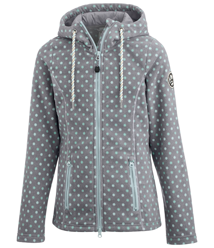 Dziecięca bluza polarowa w kropki. Szwy w kontrastowych kolorach z przodu i na kapturze. Naszywka z logo na rękawie. Kaptur podszyty miękkim jerseyem. 2 kieszenie na suwak. 100% poliestru. Podszewka 95% bawełna, 5% elastan.