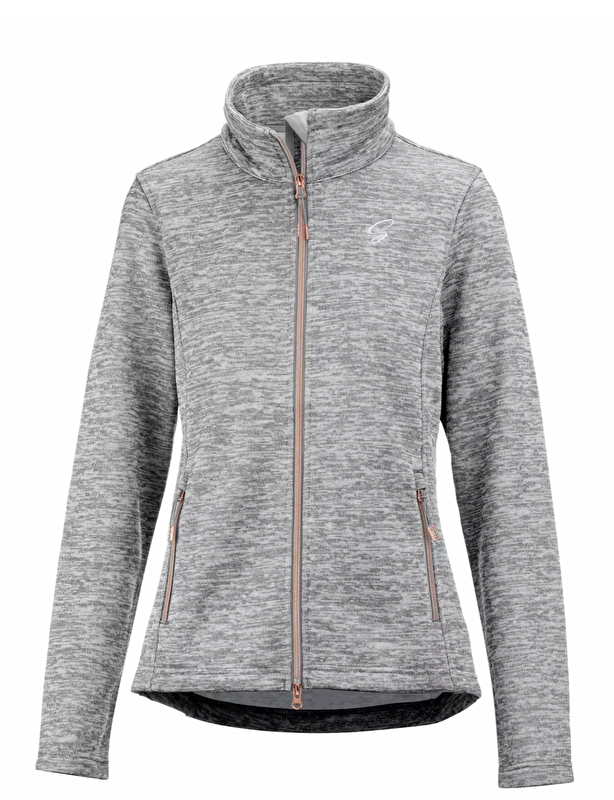 Wygodna dzianinowa kurtka polarowa z wysokim kołnierzem i teksturowanym wnętrzem. Podkład 2-drożny zamek błyskawiczny z przodu z osłoną podbródka, 2 przednie kieszenie na zamek błyskawiczny i dyskretny haft na piersi. 100% poliester.