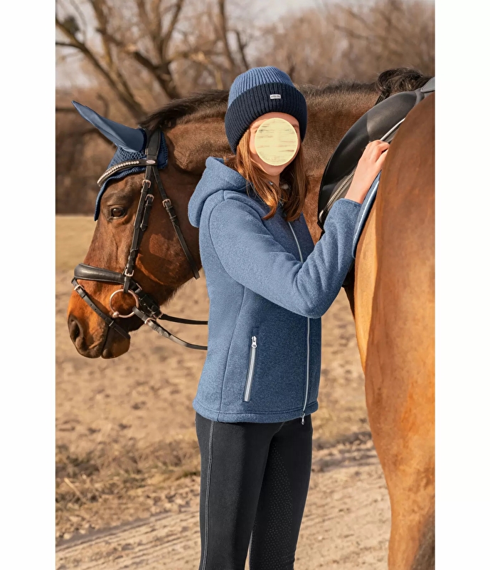 Piękna dzianinowa bluza polarowa o melanżowym wyglądzie z kapturem i przytulnym wnętrzem wykonanym z pluszowego polaru. Podszyty dwukierunkowy zamek błyskawiczny z osłoną podbródka, 2 przednie kieszenie zapinane na zamek i wyszywane logo na rękawie. 100% poliestru.