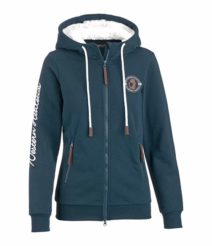Wygodna bluza dresowa z kapturem z miękką podszewką i sznurkiem. Szerokie ściągacze u dołu. 2 przednie kieszenie na suwak, 2-kierunkowy suwak z przodu. Wypukły haft na ramieniu. 65% bawełna, 35% poliester. W kapturze jest baranek, reszta bluzy docieplona od wewnatrz miłym polarkiem.