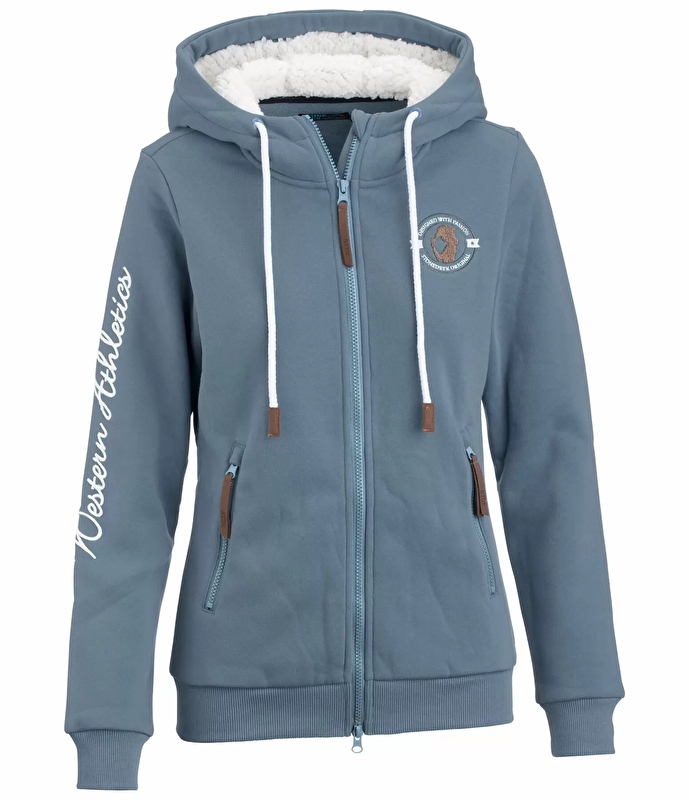 Wygodna bluza dresowa z kapturem z miękką podszewką i sznurkiem. Szerokie ściągacze u dołu. 2 przednie kieszenie na suwak, 2-kierunkowy suwak z przodu. Wypukły haft na ramieniu. 65% bawełna, 35% poliester. W kapturze jest baranek, reszta bluzy docieplona od wewnatrz miłym polarkiem.