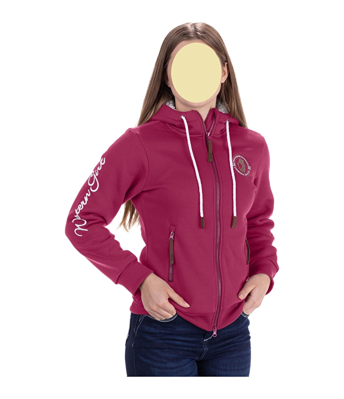 Wygodna bluza dresowa z kapturem z miękką podszewką i sznurkiem. Szerokie ściągacze u dołu. 2 przednie kieszenie na suwak, 2-kierunkowy suwak z przodu. Wypukły haft na ramieniu. 65% bawełna, 35% poliester.
