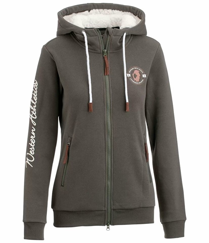 Wygodna bluza dresowa z kapturem z miękką podszewką i sznurkiem. Szerokie ściągacze u dołu. 2 przednie kieszenie na suwak, 2-kierunkowy suwak z przodu. Wypukły haft na ramieniu. 65% bawełna, 35% poliester.