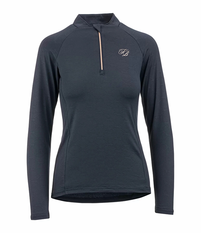 Elastyczna, miękka, funkcjonalna koszula z długim rękawem, z subtelnie wytłoczonym wzorem w kształcie wędzidełka i chropowatą stroną wewnętrzną. Oddychający i szybkoschnący. Stójka z zamkiem błyskawicznym i osłoną podbródka oraz błyszczący nadruk na piersi. 92% poliestru 8% elastanu.
