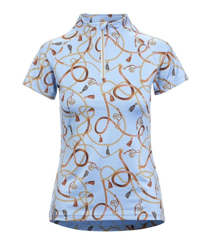 Ponadczasowo elegancka koszula funkcjonalna z klasycznym nadrukiem na całej powierzchni i krótkimi rękawami. Oddychający i szybkoschnący. Raglanowe rękawy, stójka z zamkiem błyskawicznym i osłoną podbródka. 88% poliester, 12% elastan.