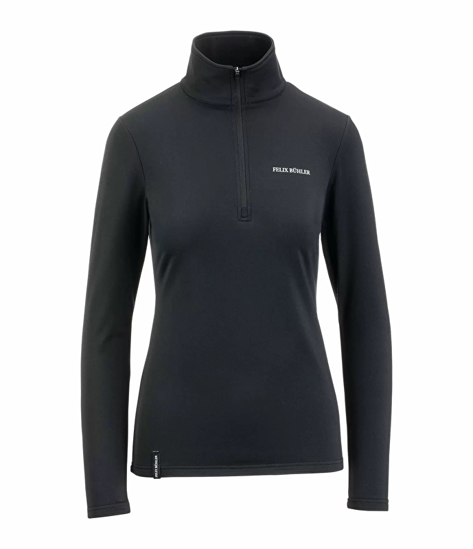 Elastyczna i miękka koszulka z długimi rękawami, stójką, zamkiem błyskawicznym i nadrukiem Felixa Bühlera na piersi. Oddychająca i szybkoschnąca. Wysokiej jakości elastyczny materiał jest gładki na zewnątrz i polarowy od wewnątrz. 90% poliester, 10% elastan.