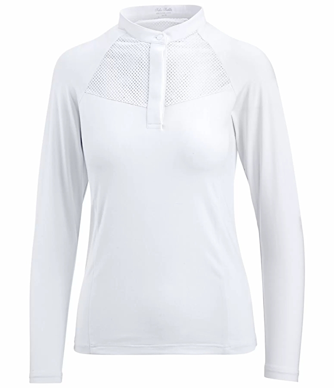 Elegancka damska koszulka turniejowa ze sportową wstawką z siateczki w dekolcie i na plecach, raglanowymi rękawami i krytym zapięciem na guziki. Bardzo elastyczny, oddychający i szybkoschnący materiał funkcjonalny. 88% poliester, 12% elastan.