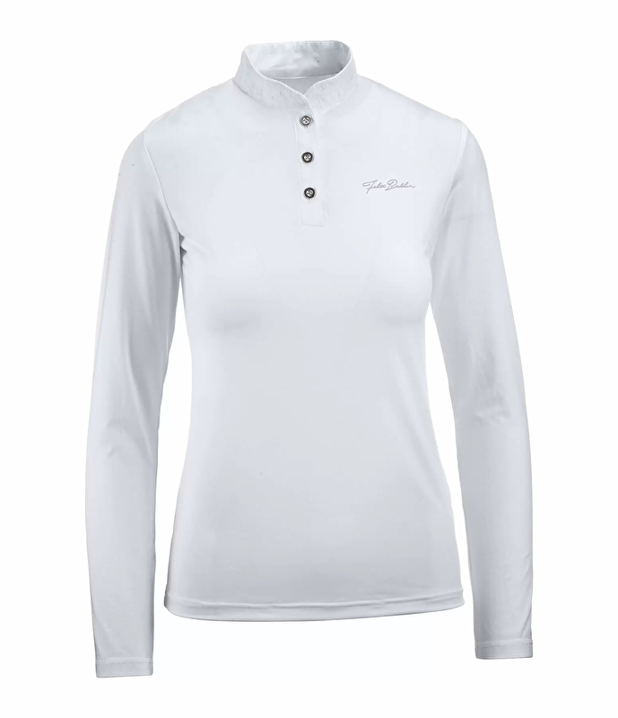 Elegancka koszula funkcjonalna z długim rękawem, wykonana z elastycznego, oddychającego i szybkoschnącego materiału funkcjonalnego. Stójka zapinana na guziki i błyszczący nadruk Felixa Bühlera na piersi. Kołnierzyk i górna część pleców obszyta miękką koronką. 88% poliester, 12% elastan.