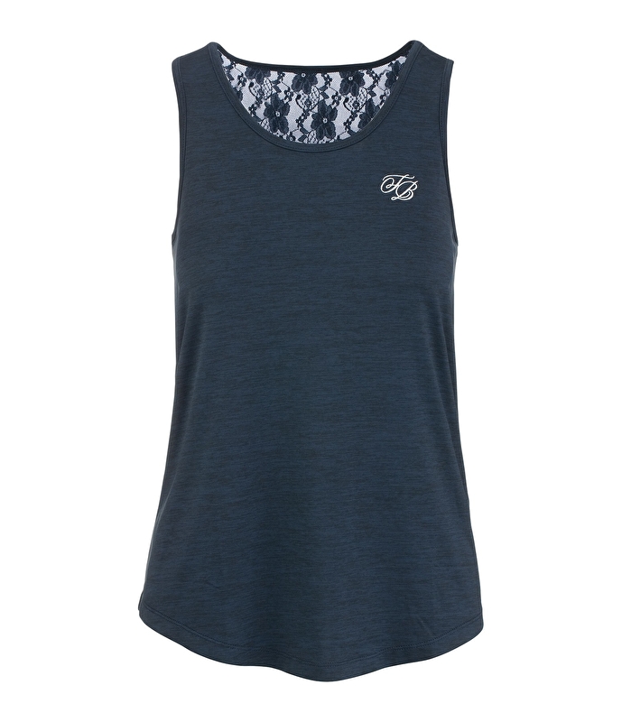 idealna na upalne dni! Uroczy podkoszulek w melanżowych kolorach, o luźnym kroju. Wykonane z oddychającego i szybkoschnącego materiału funkcjonalnego. Na piersi haft Felixa Bühlera, z tyłu piękna koronkowa wstawka. 94% poliester, 6% elastan.