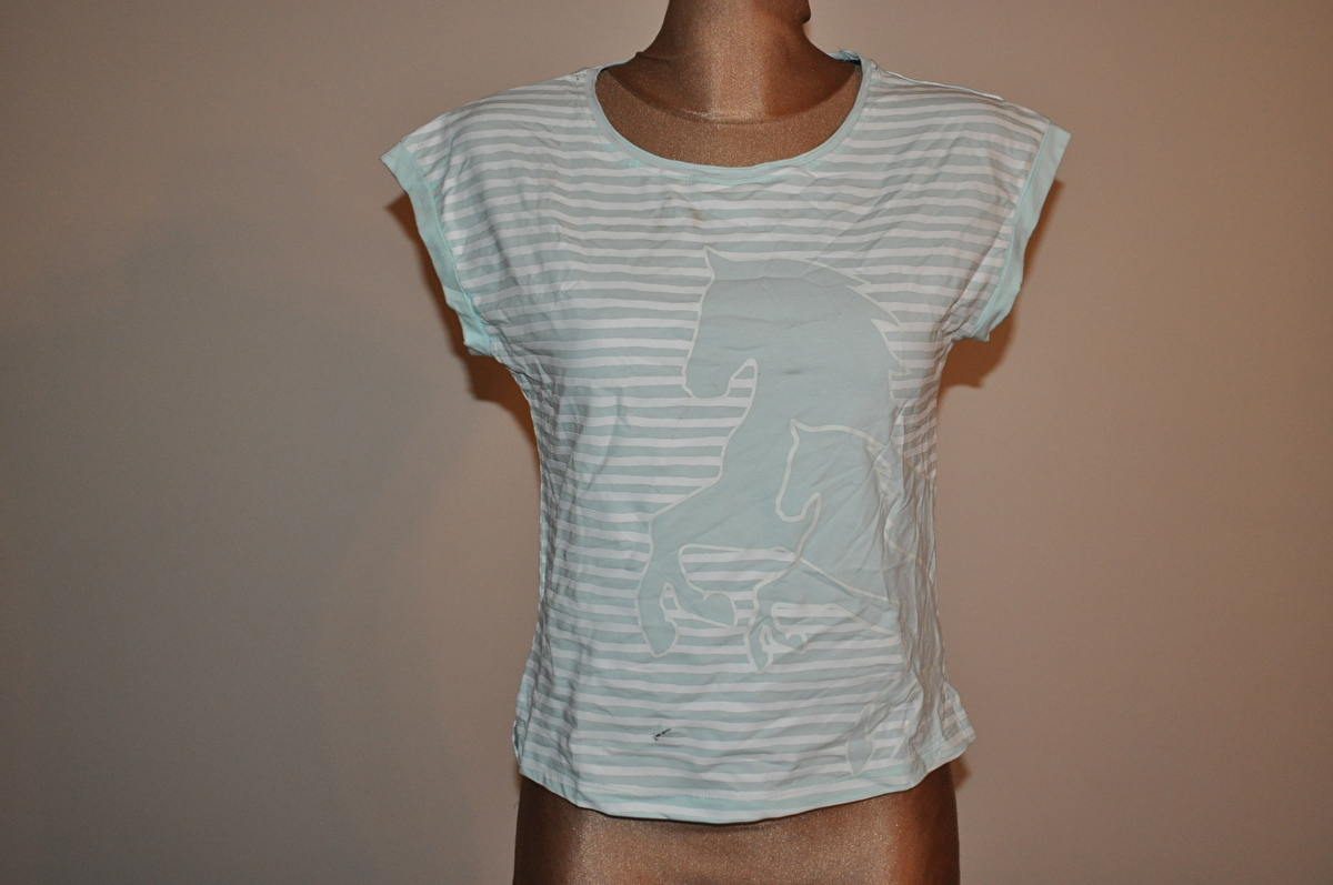 Koszulka używana. Posiada plamkę i niewielkie przecięcie.
