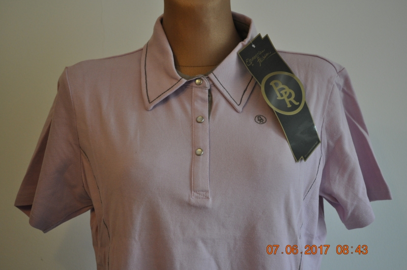 Sprzedam nową, damską koszulkę polo firmy BR model Oyster w rozmiarze XXL. Koszulka w kolorze orchid, z kołnierzykiem, zapinana na guziki, brązowe zdobienia i nici. Posiada metki.