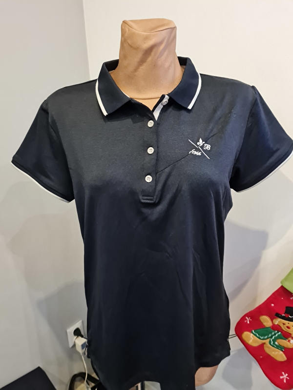 Bluzka jak nowa, po naprawie krawieckiej - zszycie na piersi przy logo - zdjęcie.
