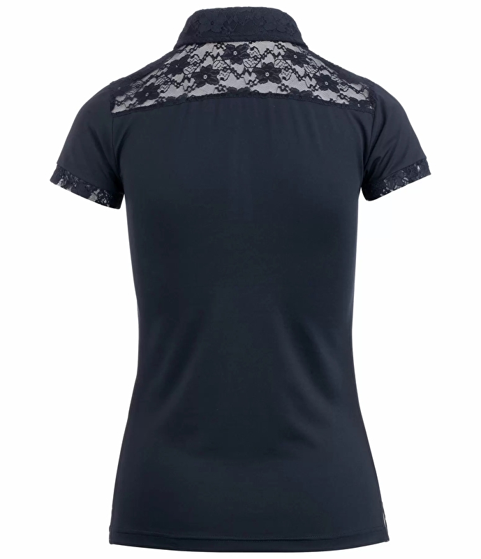 Świetna funkcjonalna koszulka polo wykonana z bardzo elastycznego, oddychającego i szybkoschnącego materiału funkcjonalnego. Kołnierzyk, mankiety i zapięcie na guziki wykończone miękką koronką. Tył z koronkową wstawką i nadrukiem Felix Bühler na piersi. 88% poliester, 12% elastan.