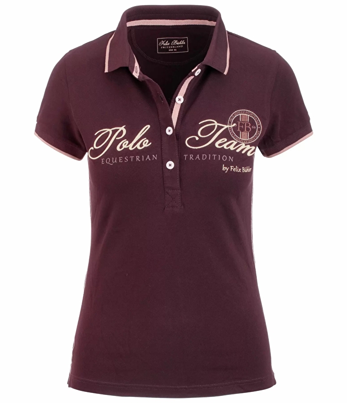 Klasyk do jazdy konnej. Sportowa damska koszulka polo wykonana z bawełny. Haft i nadruki na przodzie. Wysokiej jakości, elastyczna bawełniana pika. Zapięcie na guziki i boczne rozcięcia z kontrastowymi tasiemkami. 95% bawełna, 5% spandex.
